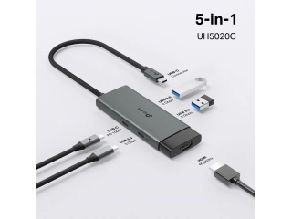 Hub 6 en 1 USC-C. UH5020C convierte un único puerto USB-C en 5 puertos con un HDMI 4K a 60Hz, 100W Power Delivery, 1 puerto de datos USB-C y 2 puertos de datos USB-A.