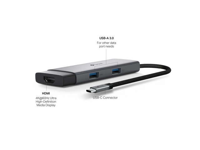 Hub TP-LINK UH5020C | Conector USB-C, Puertos USB-C, 3 USB 3.0, HDMI (4K)