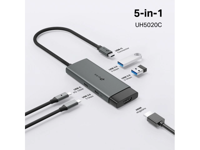 Hub, TP-LINK UH5020C, USB, Tipo C, 5 en 1, Cable, 180 mm, concentrador