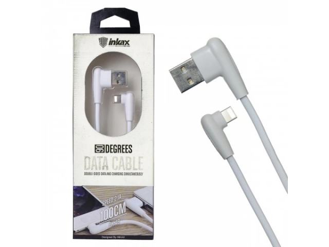 Cable, USB, USB-C, para, iPhone, Inkax, Apple, 2.1 A, 90°, 1 m, metro, de Datos, Carga, Lightning, color, blanco