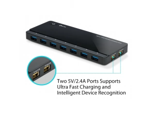 Contenido de Paquete:- Hub 7 Puertos USB 3.0 con 2 puertos cargadores UH720