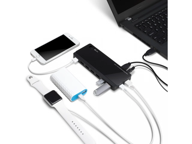 - Los 7 puertos de transferencia de datos hace que intercambiar de dispositivos sea innecesario.