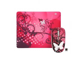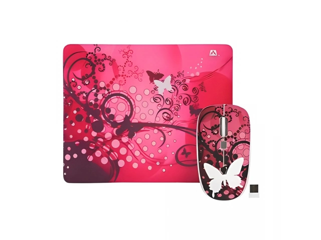 Combo Mouse + Mouse Pad JETION JT-DMS046 | Diseño Mariposa Rosado