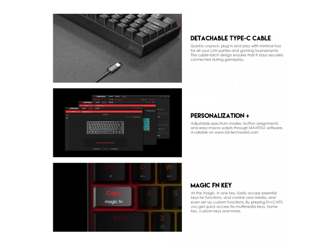 Teclado, Gamer, Mecánico, USB, FANTECH, MAXFIT 61, MK-857, Reducido, RGB, Negro, Inglés, Red Switch