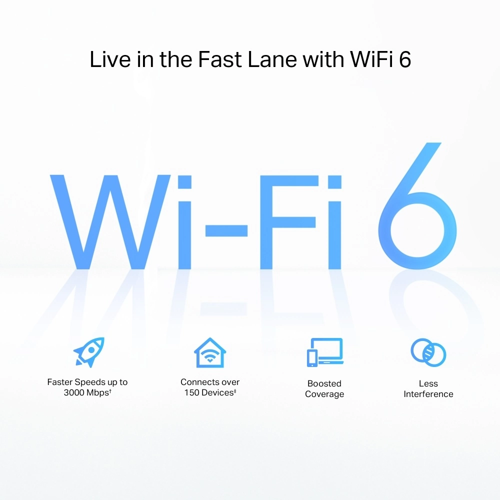 WiFi AX3000 de doble banda más rápido: WiFi de hasta 3,0 Gbps (2402 Mbps + 574 Mbps) para navegación, transmisión y descarga más rápidas, todo al mismo tiempo.