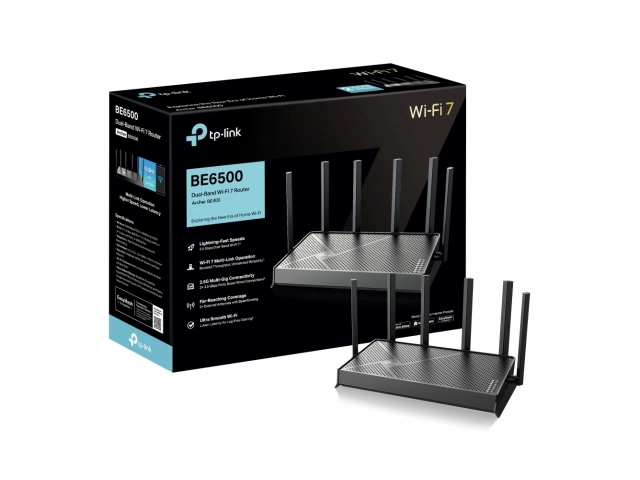 Router, TP-Link, Archer BE400, BE6500, WiFi 7, Dual Band, 5 GHz, 2402, 2.4 GHz, 574 Mbps, Puertos Gigabit, 4 Antenas, Alto Rendimiento