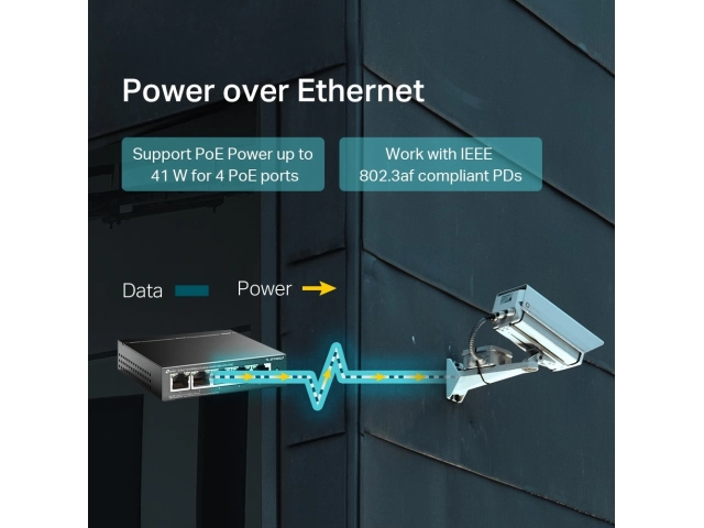 Interfaz: - 5 puertos RJ45 de 10/100 Mbps (los puertos 1 a 4 admiten PoE 802.3af)