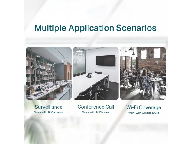 - Puertos 8 × 10/100 Mbps RJ45 (los puertos 1–4 admiten 802.3af PoE)