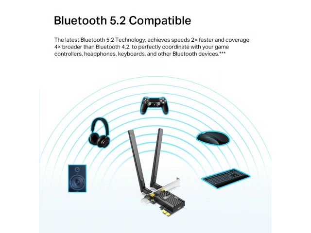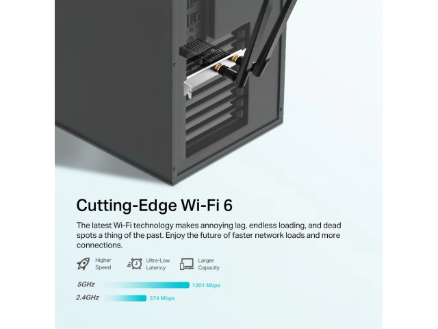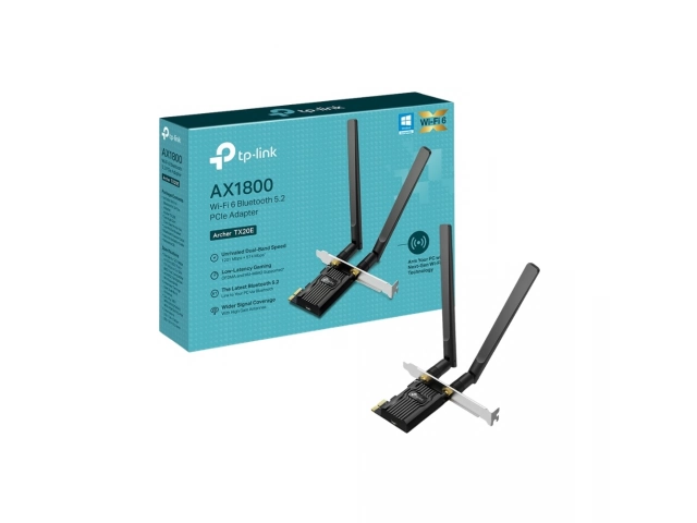 Adaptador, Inalámbrico, PCI-Express, TP-LINK, Archer TX20E, AX1800, WiFi 6, Bluetooth 5.2, Dual Band, 5 GHz, 1201 Mbps, 2.4 GHz, 574 Mbps