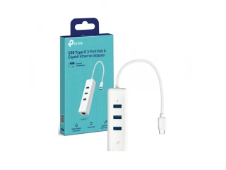 Hub, TP-LINK, UE330C, 3 puertos, USB tipo C, Gigabit Ethernet, Cable, 180 mm, concentrador