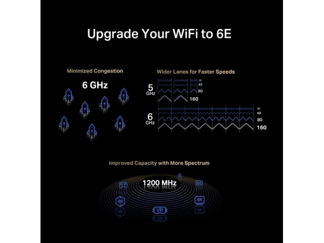 Velocidad de tres bandas imparable: Velocidades de hasta 2402 Mbps (6 GHz) + 2402 Mbps (5 GHz) + 574 Mbps (2,4 GHz)