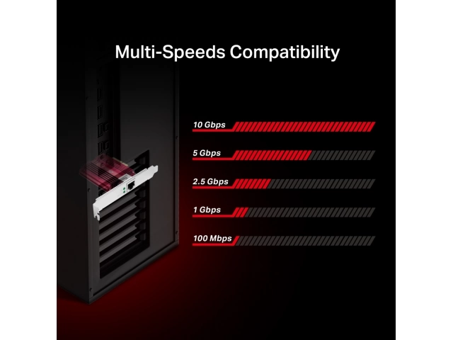 Conexión en red de 10 Gbps: combinado con la última tecnología 10GBase-T, TX401 ofrece velocidades extremas de hasta 10 Gbps, que es 10 veces más rápido que los adaptadores Gigabit típicos, lo que garantiza transmisiones de datos fluidas tanto para el acceso a Internet como para las transmisiones de datos locales.
