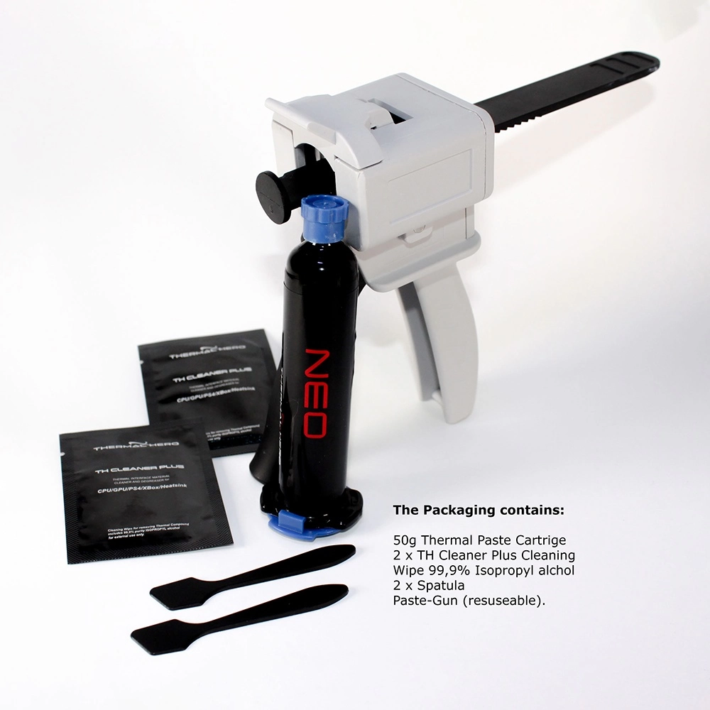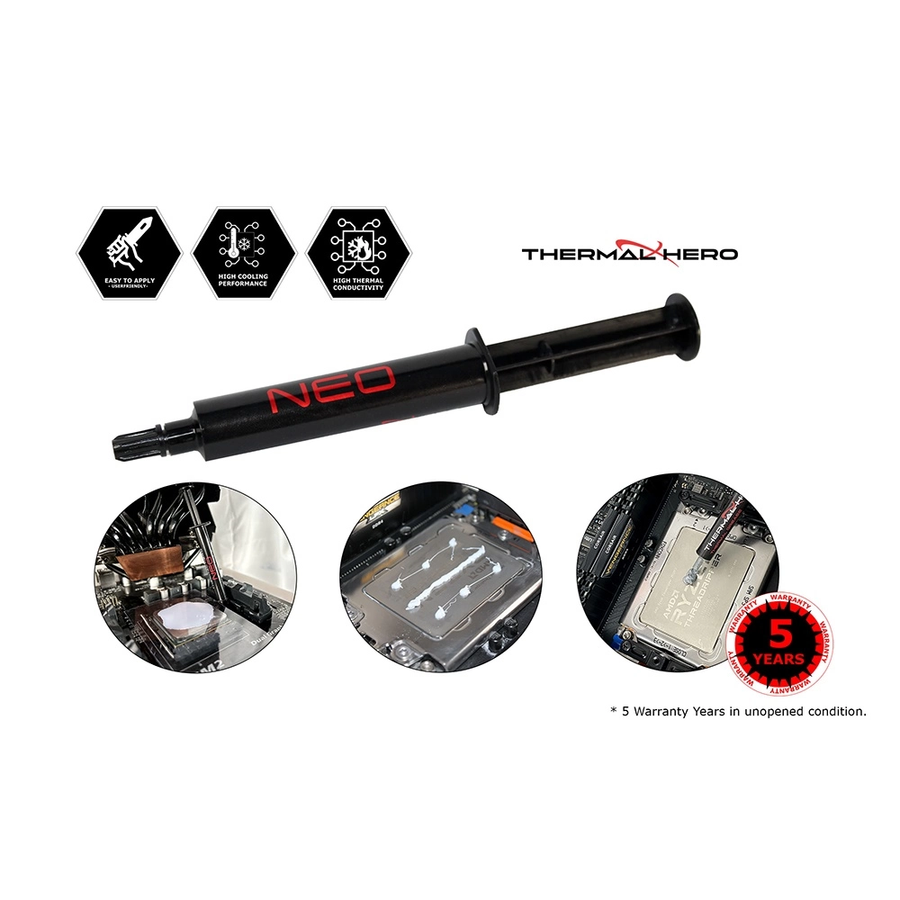 Facilidad de Aplicación: Gracias a su formulación a base de silicona, la pasta térmica Thermal Hero NEO es fácil de aplicar sin problemas de pegajosidad ni excesiva expansión. Esto facilita el proceso de aplicación, garantizando una cobertura uniforme para un rendimiento térmico óptimo.