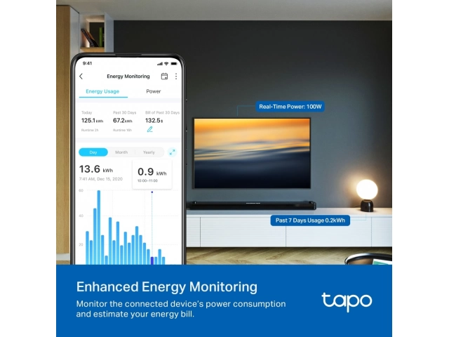 Enchufe, Inteligente, TP-LINK, Tapo, P110M, WiFi, Medidor, Consumo, Compatible, Matter