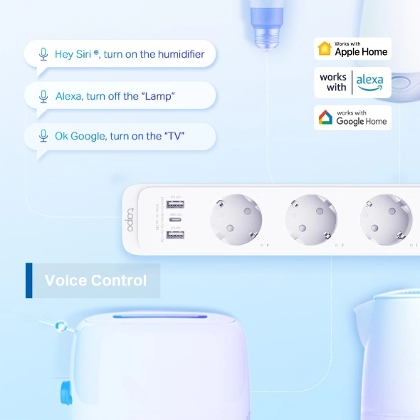 Control individual: Controle por separado 3 enchufes inteligentes en la zapatilla mediante una aplicación o comandos de voz.