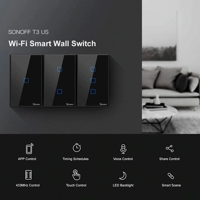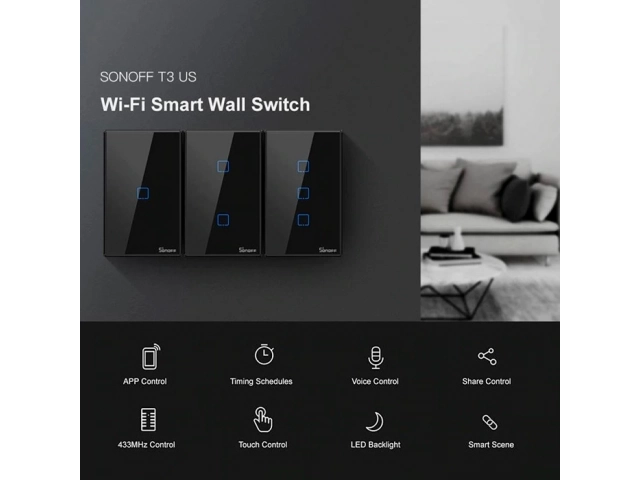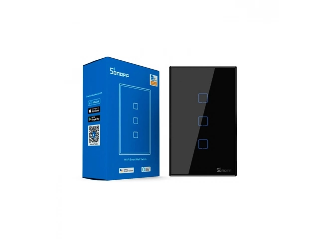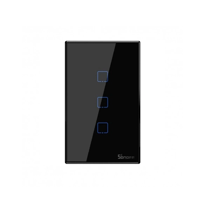 Interruptor, Inteligente, smart, Pared, Sonoff, T3US3C-TX, WiFi, RF, Táctil, touch, 3 Pulsadores, negro