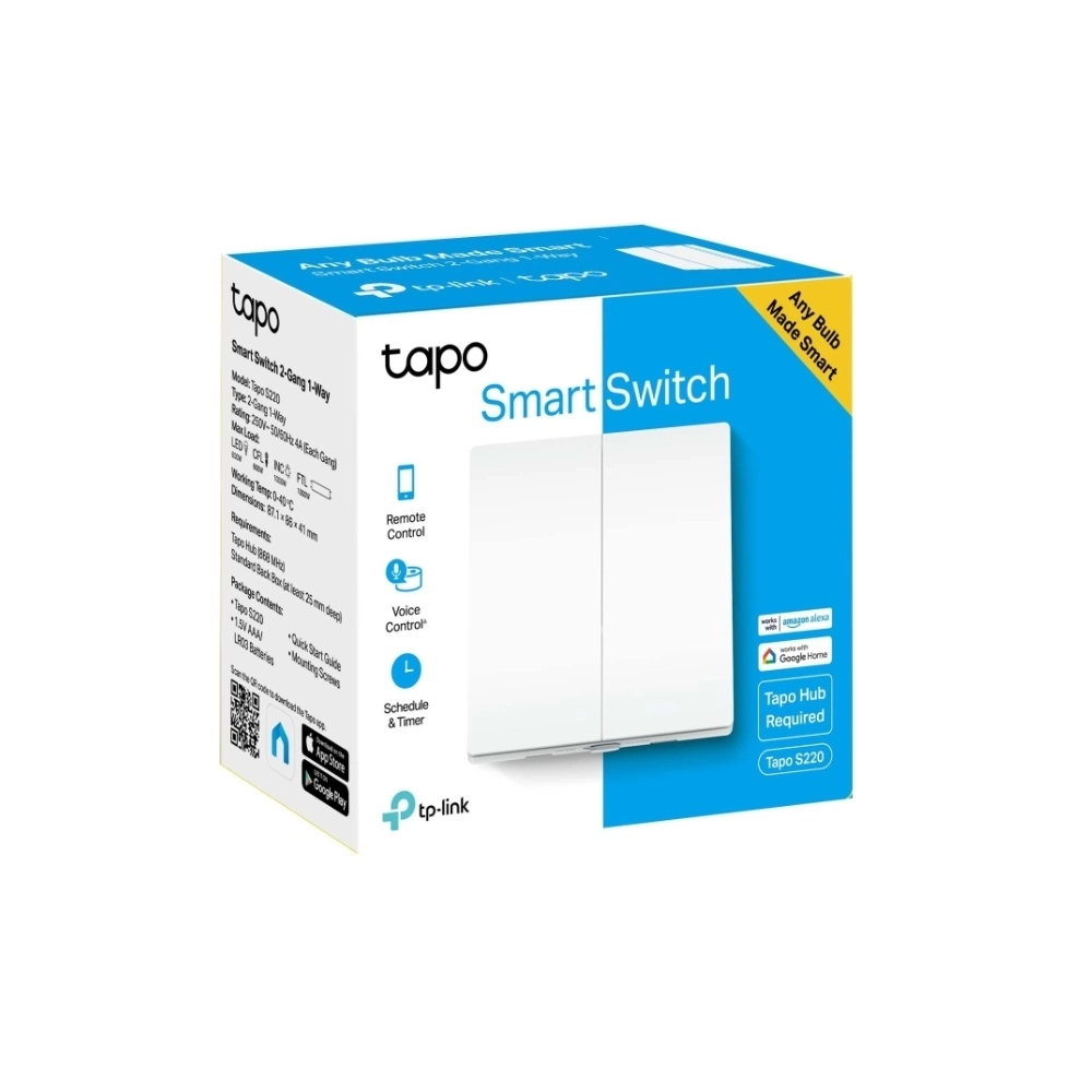 Interruptor, Inteligente, smart, de Pared, TP-LINK, Tapo S220, WiFi, Control por App, control por Voz, Color Blanco, No necesita cables