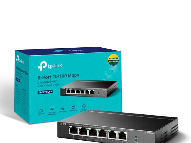 TL-SF1006P, Switch, TP-LINK, SF1006P, Puertos RJ45 10/100, PoE af, Carcasa metálica