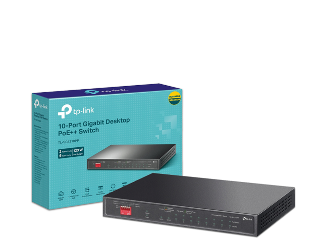 Switch, TP-LINK, TL-SG1210PP, 10 puertos Gigabit, 6 Puertos PoE+, 2 Puertos PoE++, Carcasa, Metálica