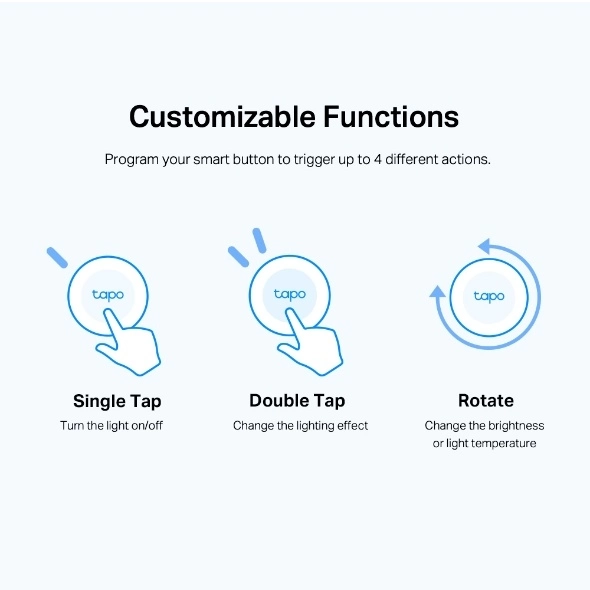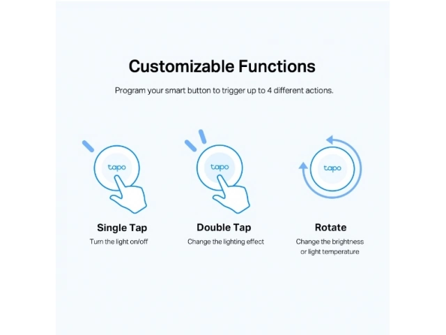 Acciones inteligentes: Controla luces, enchufes, cámaras y demás dispositivos inteligentes Tapo con un solo botón.