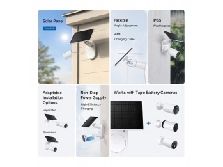 Energía Solar. Utiliza energía solar gratuita y limpia para proporcionar un suministro de energía constante para tus cámaras Tapo alimentadas por batería.