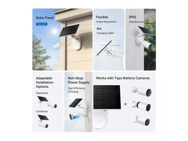Panel solar, TP-LINK, Tapo A201, Resistente al agua, ip65, Cable de carga de 4 m