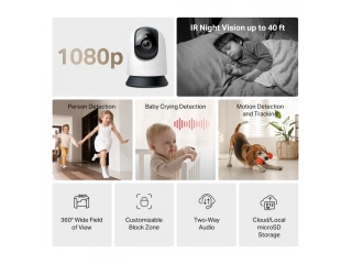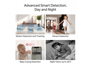 Detección inteligente - Sigue el movimiento de forma inteligente las 24 horas del día, manteniendo los objetos en cuadro incluso en completa oscuridad gracias a la visión nocturna. Recibe alertas instantáneas al detectar movimiento, personas o el llanto de un bebé.