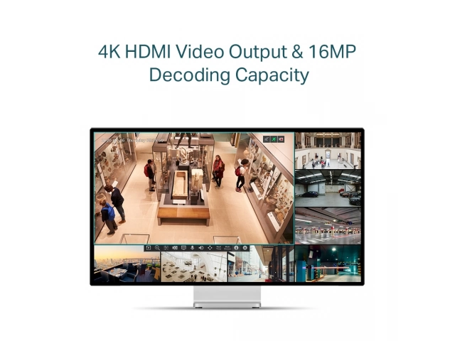 Salida de video HDMI 4K y capacidad de decodificación de 16MP: La definición de imagen de hasta 8MP y una pantalla de 4 canales garantizan capturar cada detalle, desde todos los ángulos.