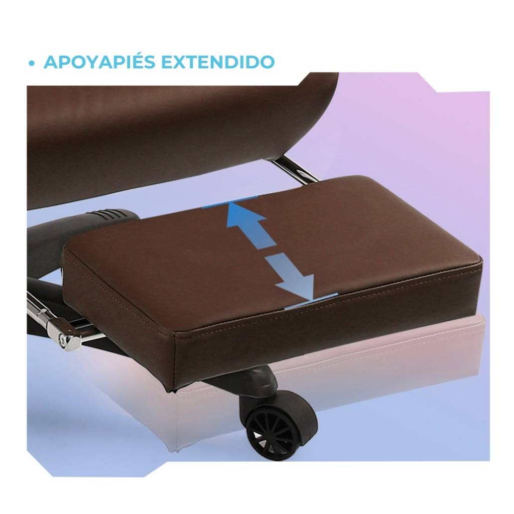 5 ruedas giratorias. Apoyabrazos y apoyapiés. Masajeador lumbar.