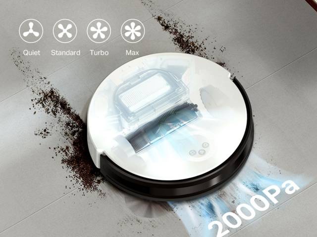Auto-carga: Vuelve a la base de carga automáticamente cuando la batería se agota, y luego se reinicia justo donde lo dejó.