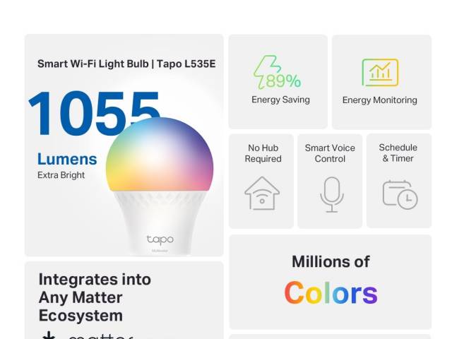 Compatible con Matter. Gracias a la compatibilidad con Matter, Tapo L535E puede funcionar sin problemas con otros productos certificados de otras plataformas.