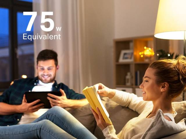 Intensidad regulable de 1055 Lúmenes. Equivalente a una bombilla de 75W tradicional, ilumina cualquier estancia. Con intensidad regulable a tu gusto del 1% al 100%.