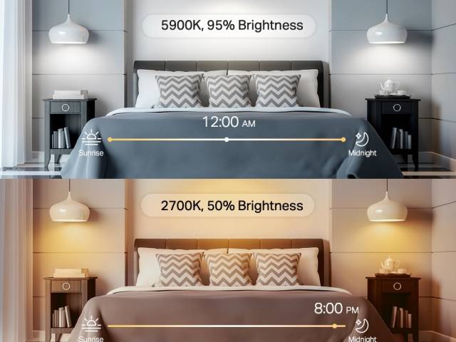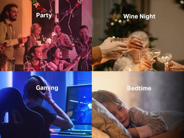 Horario y Temporizador. Puedes establecer diferentes horarios para encender, apagar o cambiar el color e intensidad de la luz automáticamente.