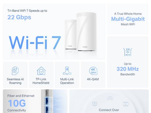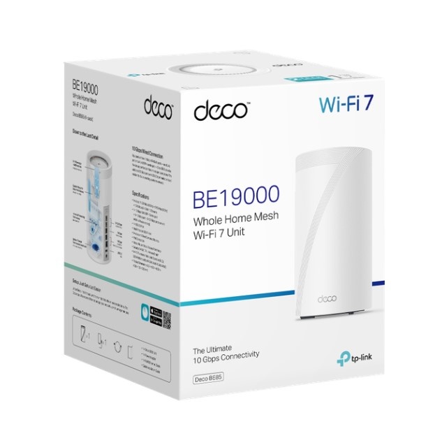Deco BE85-3, Access Point, TP-LINK, Deco, BE85, Pack x3, BE22000, WiFi7, Mesh, Tribanda, 6 GHz, 5 GHz, 2.4 GHz, 4 Puertos, 10 Gbps, SFP+, RJ45, 10 Gbps, 2.5 Gbps, Punto de Acceso, WiFi7