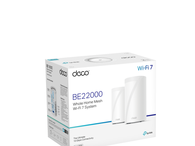 Deco BE85-3, Access Point, TP-LINK, Deco, BE85, Pack x3, BE22000, WiFi7, Mesh, Tribanda, 6 GHz, 5 GHz, 2.4 GHz, 4 Puertos, 10 Gbps, SFP+, RJ45, 10 Gbps, 2.5 Gbps, Punto de Acceso, WiFi7