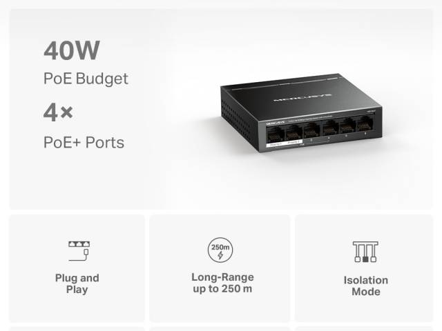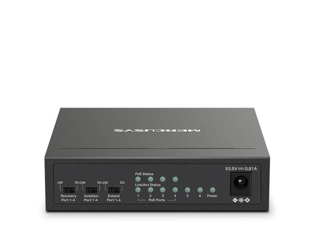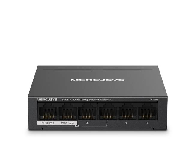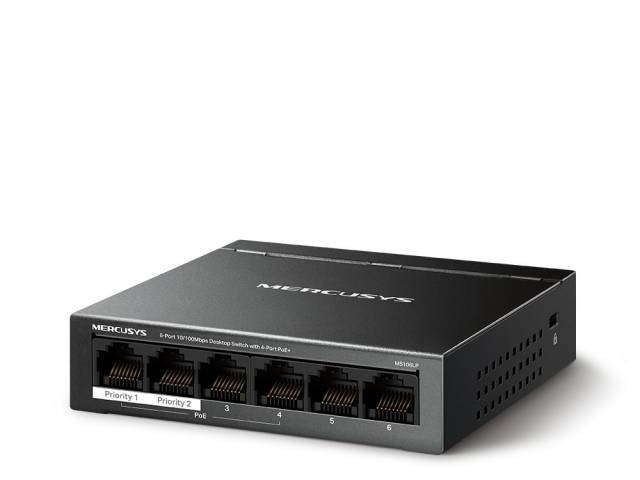 Switch, MERCUSYS, MS106LP, Puertos RJ45 10/100, PoE+, at/af, Carcasa metálica, tp-link