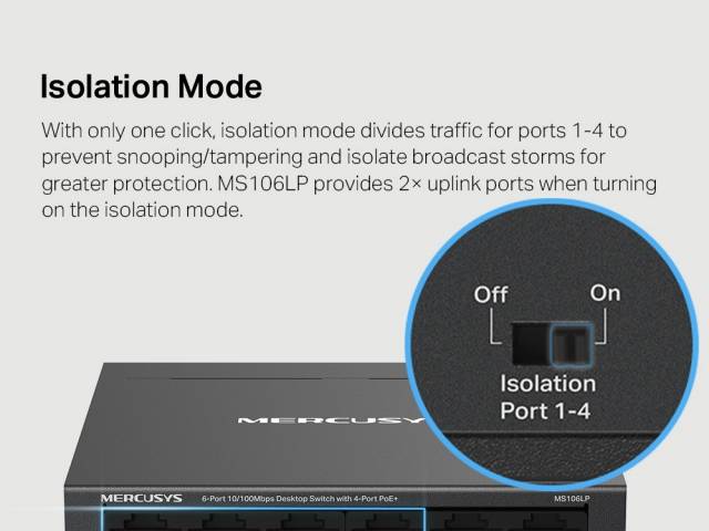 Modo de aislamiento: Un clic para dividir el tráfico para puertos específicos para mayor estabilidad y seguridad.