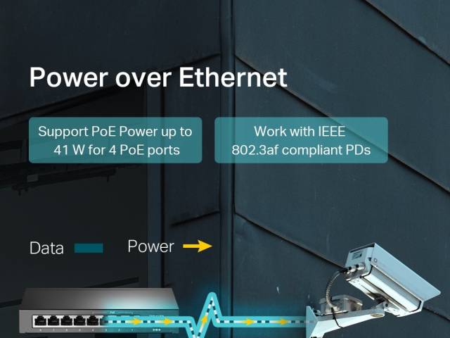 - Admite alimentación PoE de hasta 41 W para todos los puertos PoE.