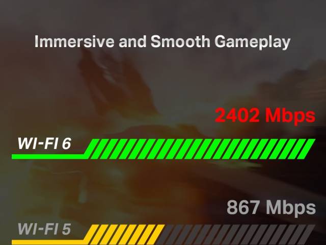 Velocidad de Wi-Fi 6 inigualable: Rompe la barrera gigabit con una velocidad de hasta 2402 Mbps (5 GHz) + 574 Mbps (2.4 GHz).